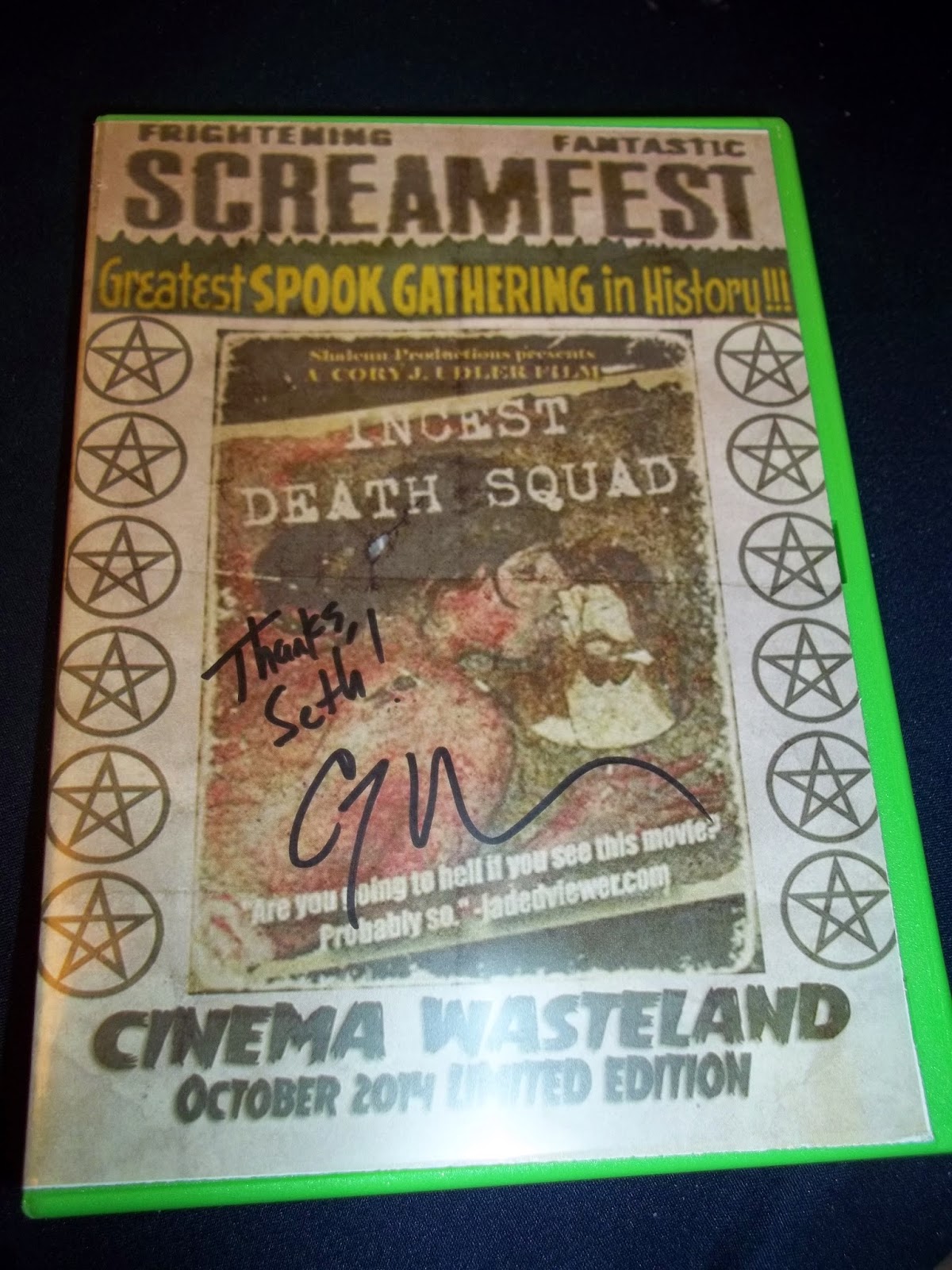 Day 7 was made of of Udler's INCEST DEATH SQUAD trilogy. I was glad to find that these are a step up from the day's previous movie. These uber low budget horror/hixploitation films revolve around a religious brother and sister who revel in dirty sexuality to go along with their bible tales. Amber, the sister, enjoys getting fucked by out of towners while her brother Jeb reads from the Good Book. Jeb then brutally murders the tourists all in the name of God.